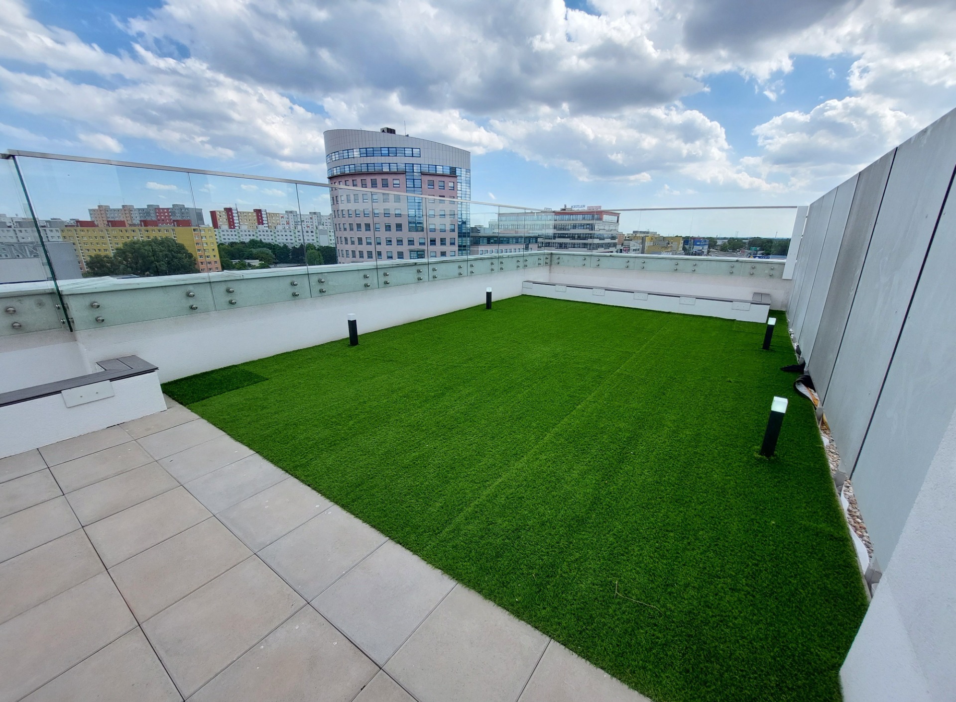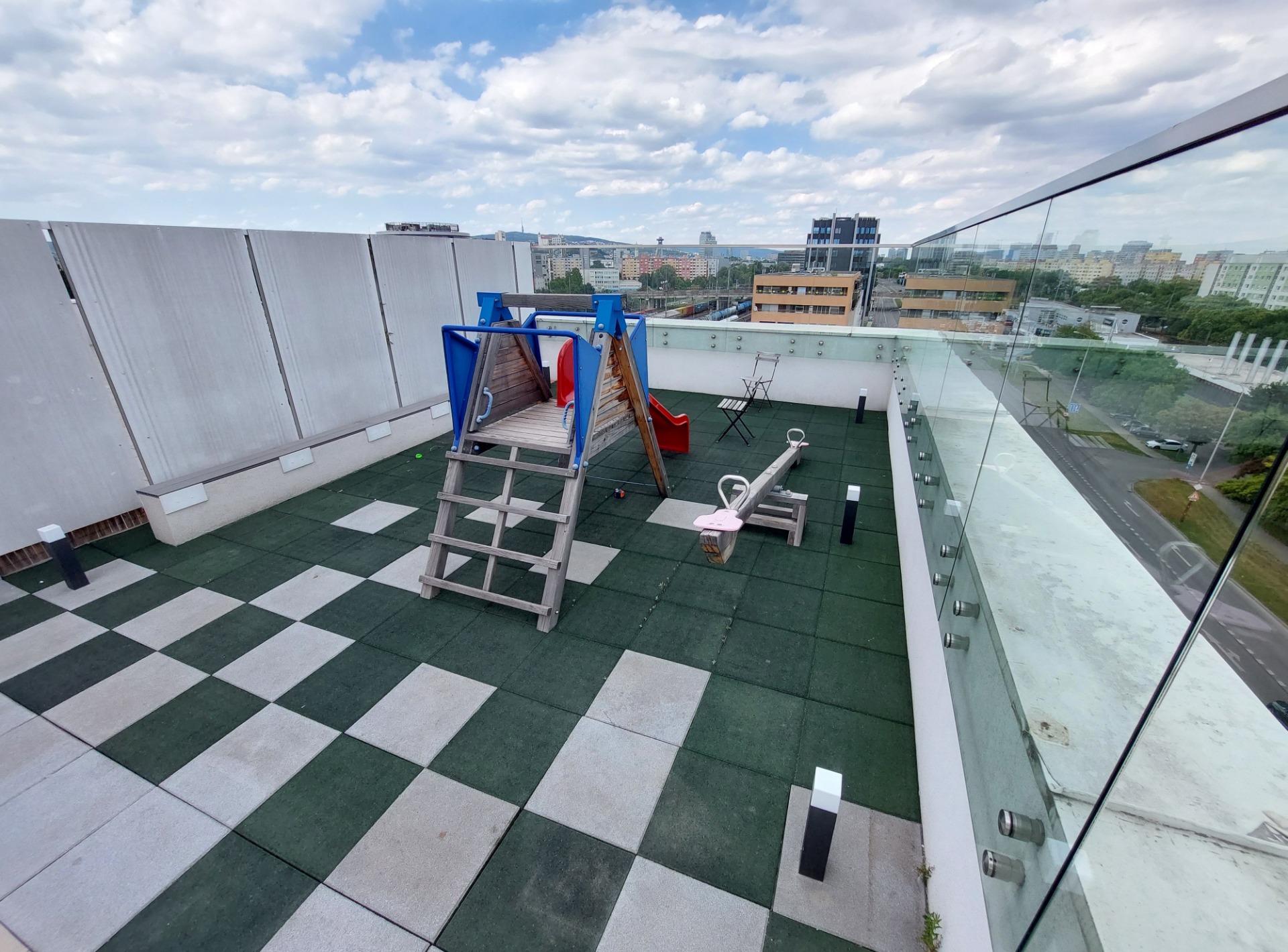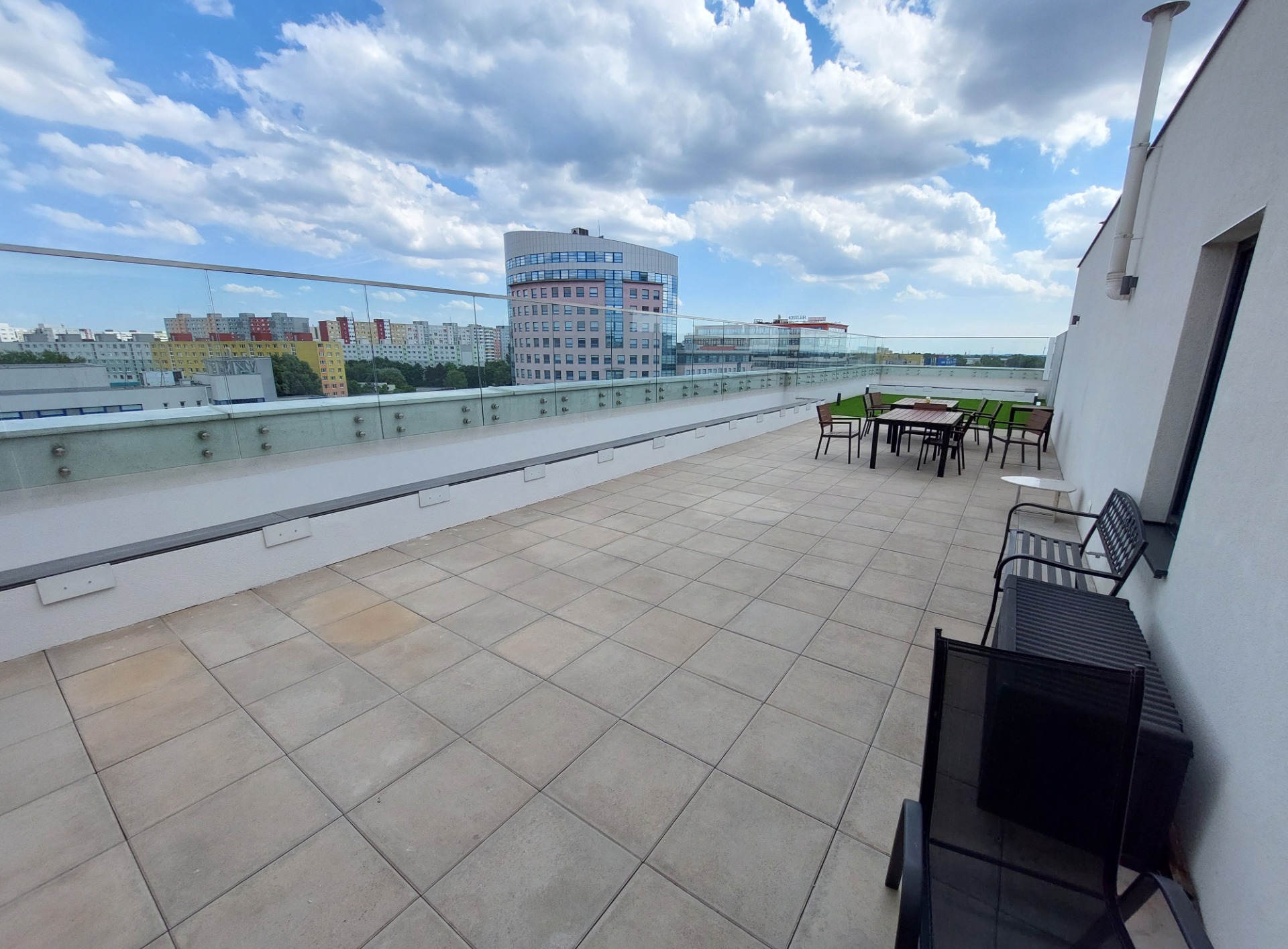 - Dve priestranné spoločné terasy na streche bytového domu